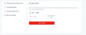 Bước 4: Với những tài khoản đã đăng ký bảo mật bằng SĐT thì hệ thống sẽ yêu cầu người chơi nhập mã mới có thể tiến hành đổi mật khẩu